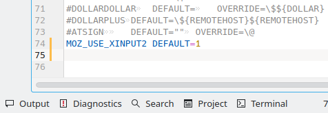 This will open the default text editor of Kubuntu/KDE with the config file already open. Then scroll all the way to the bottom and paste the following line onto a blank line at the bottom followed by an enter: MOZ_USE_XINPUT2 DEFAULT=1