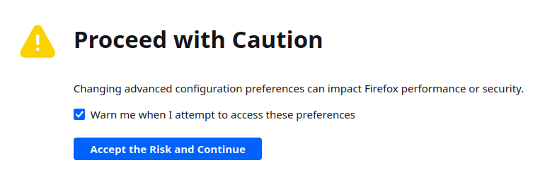 You can now close this (config) page, and even Firefox entirely. But we’re not there yet though.