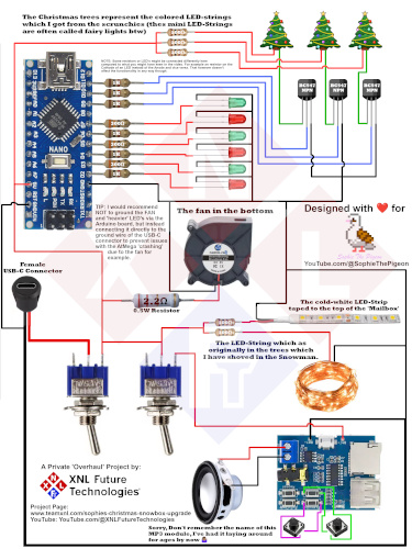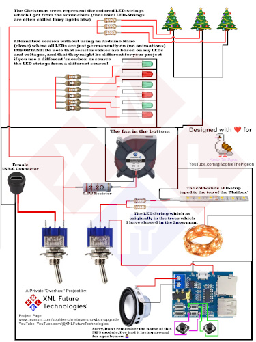 These are the project files for the project I’ve made for our rescue pigeon Sophie, it was/is a Christmas snowbox which had VERY “power management”, boring lights, terrible music, not enough lights, and more of the alike.