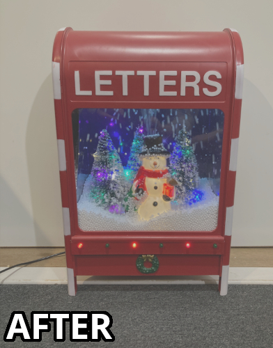 This was basically a personal project to upgrade the Christmas decoration we’ve bought for our beloved Sophie because she loved these ‘snowboxes’ so much when she saw them at a Christmas store we went to with her (can be seen in the time stamped video here), so we later on bought one which we could also put on the floor for her (shorts of her getting it here).